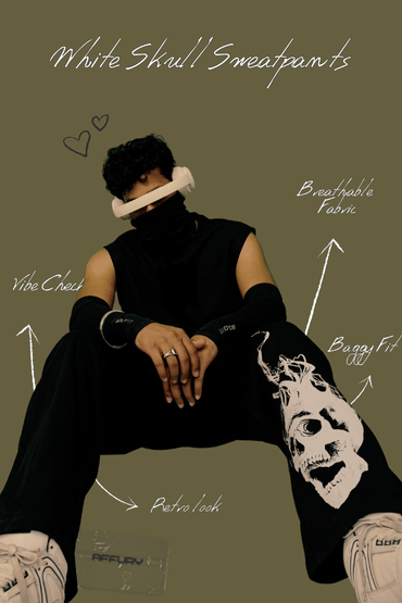 WHITE SKULL BAGGY SWEATPANTS